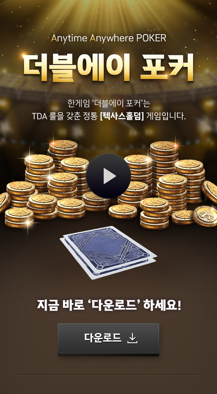 한게임 '더블에이 포커'는 TDA 룰을 갖춘 정통 [텍사스홀덤] 게임입니다.