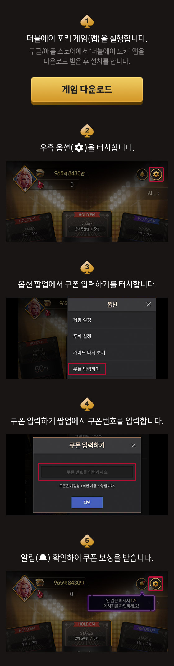 - 알림 확인하여 쿠폰 보상을 받습니다.