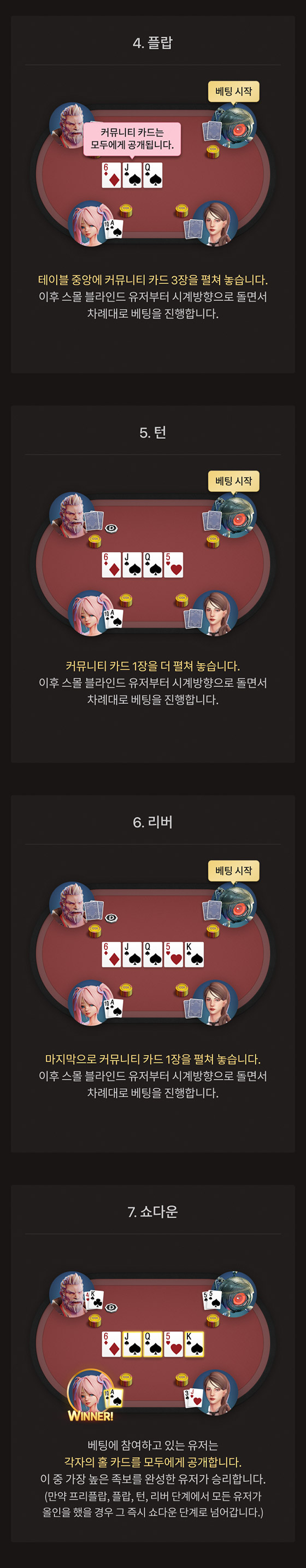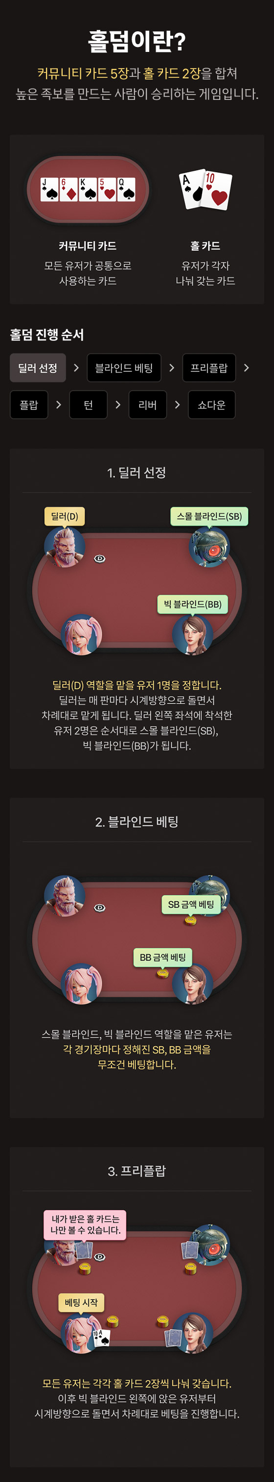 - 홀 카드: 유저가 각자나눠 갖는 카드